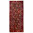 The carpet is the narrowest at the top and broadest at the bottom and has black fabric patches on the back to mark the top in case it is to be hung
