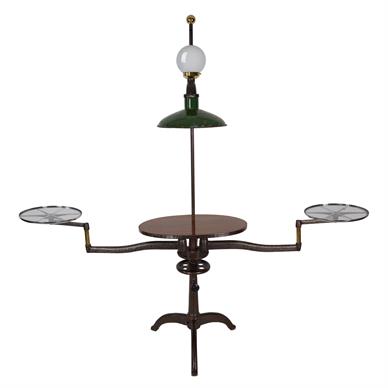 ADJUSTABLE LAMP WITH ATTACHED TABLE AND ROTATING HANDS