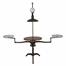 Custom-made industrial lamp that can be adjusted to a maximum height of 81.88 in (208 cm) and a maximum width of 72.44 in (184 cm). The lamp is attached to a central wooden table with extendable rotating hands, each of which is fixed to a smaller glass tray. The trays can be rotated 360 degrees.