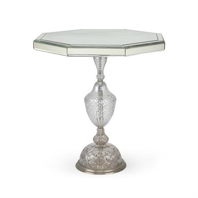 The mirrored glass top is newly fixed, whereas the crystal base is old. Though the table is not marked, its design is reminiscent of similar works by F & C Osler.