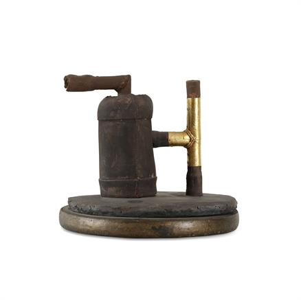 From 1967 to 1971, Himmat Shah designed and executed monumental murals in brick, cement and concrete at St. Xavier's School Ahmedabad. Since then, he started working on relief and sculpture in plaster, terracotta and ceramics. Shah’s sculptures in bronze and terracotta explore materiality, texture and the various ways in which reality can be presented. They internalize the built-in obsolescence of consumerist society. His gilded objects of clay have the traces of paintings on them and there are unreadable hieroglyphs gouged into his series of metal heads. These are self-mocking elements, speaking of age and decay.