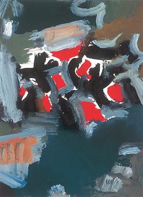 By this time, in the 1960s, Raza began departing from the Cubist style to a more fluid and fluent form of expression. In 1962, he was invited as a visiting lecturer at the University of California in Berkeley, USA. The American abstract expressionist movement had taken hold over the Parisian art scene, and Raza saw greater freedom in this particular style, inspired by artists such as Mark Rothko whose works he encountered during his time in the US. He gradually abandoned all figurative and representational forms and the carefully constructed compositions of the 1950s, and began making gestural strokes on canvas, where the figure and ground were no longer separated, but blended in a composite whole. In his medium too, he switched from oil to acrylic. Raza’s gestural works of this period were emotional essays full of colour and vibrant movement. “...colours were not being used as merely formal elements: they were emotionally charged. Their movements or consonances on the canvases seemed more and more to be provoked by emotions, reflecting or embodying emotive content. The earlier objectivity, or perhaps the distance started getting replaced or at least modified by an emergent subjectivity – colours started to take the light load of emotions more than ever before.” (Vajpeyi, p. 78)