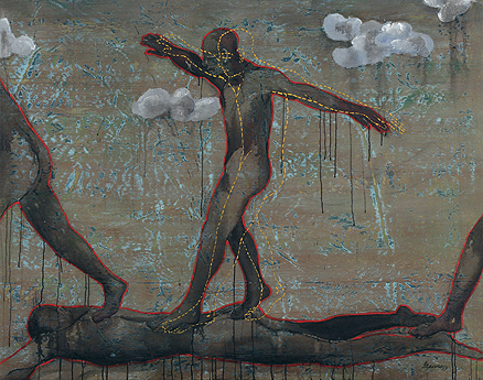G R Iranna is an artist whose work transcends the boundaries of time and space. Born in 1970, its been barely ten years since he started painting professionally, and already his work is mature and profound. Many of Iranna`s paintings depict pain as an abstract force that is translated visually in bruised textures and razor sharp cutting edges. His painting has always been far removed from an overriding, postmodern logic. Instead, Iranna uses the idealistic, representative and modernist language of Indian contemporary art. His most recent works are all visions of resistance. In just a glance, one can tell a sense of massive dynamic energy that pervades the surfaces. An energy that is fueled by torment and the struggle against it. Upon further inspection, one sees that these conflicts being played out on the surface are present also in those between one colour and another, between figure and hue, and between the crudeness and the expertise employed. These works, set on canvas as well as tarpaulin, are symbolic of an important change in Iranna`s work. Maybe symbolic even of an attempt to break free from an establishment, or a style that is beginning to become claustrophobic. The large, fundamental figure that used to appear in Iranna`s early paintings emerges only twice in this later series, and though the artist continues to employ repeated motifs in his work, they seem now to be less figurative, leaning more towards form. These pieces seem to have an almost romantic undertone: the result of Iranna`s attempt to break away from his own mould and reform his work. They cater to contemporary expectations, and reflect his need to pander many contradictory demands. Those of society as well as those of the artist himself. In 1992, GR Iranna acquired his Bachelor of Fine Arts Degree from the College of Visual Art, in Gulbarga. Two years later, he got his Master`s degree in painting from the College of Art, New Delhi. Between 1999 and 2000 he acted as artist-in-residence at Wimbledon School of Art, London. Iranna`s first one-man show was held in 1992 at the College of Visual Art, Gulbarga. Since then, he has shown at: Delhi Art Gallery and Jehangir Art Gallery, Mumbai in 1995; Gallery Espace, New Delhi in 1998; `In the Shadow of Buddha` at Gallery Martini, Hong Kong in 1999; Wimbledon School of Art, London in 2000; Maulana Azad Centre for Indian Culture, Cairo in 2000 and The British Council & The Guild Art Gallery in 2001. Iranna has also participated in several group shows including at the Chitra Kala Parishad, Bangalore in 1990; Schoo`s Gallery, Amsterdam, Holland in 1995; Vedanta Art Gallery, Chicago, U.S.A. in 1998; `Icons of the Millennium` at Gallery Lakeeren, Mumbai in 1999 and `Black & White` at Art Today, New Delhi in 2000. Iranna has received national and international recognition throughout his career. His awards include those at the All India Exhibition in Mysore and the College of Visual Art, New Delhi in 1992-92, the Bansi Parmimu Memorial Committee, New Delhi and the Delhi College of Art in 1993. In the same year, he won the MF Husain and Ram Kumar selection award at `In Search of Talent` by Vadhera Art Gallery, New Delhi. He has also been honoured in 1997 with a National Award from the Lalit Kala Academy and the AIFACS Award, at the show `50 years of Art in Independent India` in New Delhi.