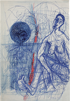 Born in 1922, Raza spent his childhood growing up in the village of Babaria in Mandala district in Madhya Pradesh surrounded by dark forests and lush landscapes. This early experience with nature became a lifetime preoccupation for Raza, and he would revisit these memories on canvas in later years. His love of art brought him to Bombay where he enrolled privately as a student at the J J School of Arts, earning his diploma in 1947. At the same time, he made his living by working at a blockmaker's design studio in downtown Bombay, which overlooked one of the busiest streets in the city and inspired him to paint his early watercolours. His paintings attracted the attention of fellow artists F N Souza and M F Husain—with whom he co-founded the Progressive Artists’ Group—and critics such as Rudy von Leyden, Walter Langhammer and Emmanuel Schleisinger—three Europeans whose presence, patronage and influence was crucial in the burgeoning art world of then Bombay.