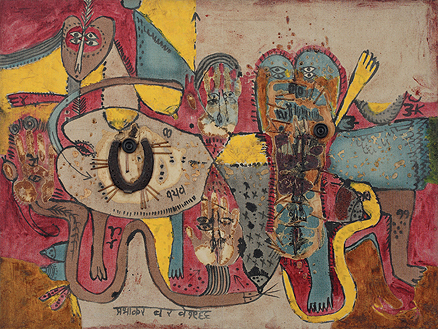 A symbolist abstractionist, Barwe was born in Nagoan, Maharashtra in 1936. Born into a family closely associated with the arts, his granduncle, V. P. Karmarkar was a well-known sculptor and his father was an artist working in Bombay`s film studios. He graduated from the Sir J.J. School of Art, Mumbai in 1959. It was during his stay in Varanasi, the holy city of India from 1961 to 1965 that he came into contact with the canon of Tantra (mysticism) that influenced his work during that period. His work had a steady evolution that allows one to trace the numerous influences on it. During his days as a student he was deeply influenced by Paul Klee. It was during that time that he was also involved along with other leading painters like K. G. Subramanyan, Gautam Waghela and Ambadas in the Weaver`s Service Centre, where fine artists worked closely with weavers in the development of modern Indian textile designs. Starting from 1961, until his death in 1995, he held 12 solo exhibitions. In 1969 he won an award instituted by the Japanese newspaper Yoshihari Shimbun. In 1976 he won an award at the annual exhibition of the Lalit Kala Akademi. Towards the end of his life he wrote a book in Marathi called `Kora (Blank) Canvas` (published by Mouj Prakashan, Mumbai). During the 1980s Barwe`s work was known for the peculiar relationship between object and space. Pieces of objects would emerge from the canvas almost as it they had a will of their own. He participated in exhibitions both in India and internationally, including the Fifth International Young Artists, Tokyo (1969), II, III, IV and V Triennales, New Delhi (1971, 1975, 1978 and 1982), the Menton Biennale, France (19760, I Asian-European Art Biennale, Yugoslavia, Turkey (1985) and IX Biennale, Valpariso, Chile (1989). Barwe lived and worked in Mumbai, where he died in 1995.
