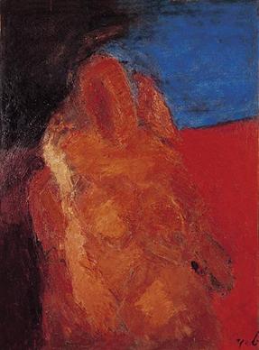 This painting titled "Woman with a Bird" was painted in the 1950`s when Tyeb Mehta`s subjects revolved around solitary figures, with muted colors, pervaded with a sense of melancholy. This is distinct from the palette of brighter and lighter colors that the artist adopted in the mid 1960`s when he returned to India after a 5 year stint in Europe. It was also later that he adopted the macabre distortionist style of Sir Francis Bacon and the flat...