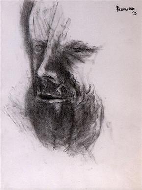 Padamsee’s interest in structure and form takes shape from landscapes, and is borne from an interest in Sanskrit texts such as the Abhijanashakuntalam . His Mirror Images reflect a concern with the duality of existence. His portraits and heads are treated with the same interest in constructing form rather than in the specifics of portraiture. The only occasion when he created identifiable portraits was in 1997, with his “Gandhi” series of works on paper in watercolour and charcoal.