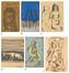 The present lot comprises drawings on five postcards and one invitation card, all executed in varied mediums. The invitation card (f) carries a drawing on its plain side, the reverse of which bears a message written by Nazm- ul- Hasan, who was friends with M F Husain and purchased the work directly from him. The message records that the drawing was made by the artist, over tea and kebabs, at a roadside 'dhaba' in January 1965. The message is further authorised by Nazm- ul- Hasan's signature.