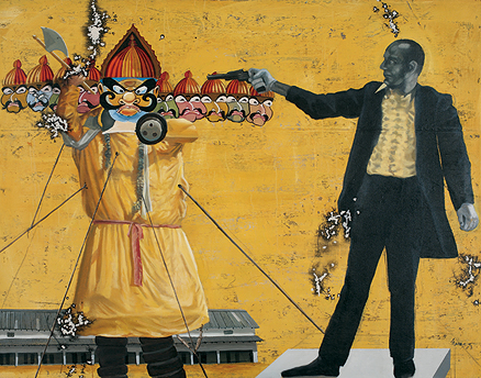 G R Iranna is an artist whose work transcends the boundaries of time and space. Born in 1970, its been barely ten years since he started painting professionally, and already his work is mature and profound. Many of Iranna`s paintings depict pain as an abstract force that is translated visually in bruised textures and razor sharp cutting edges. His painting has always been far removed from an overriding, postmodern logic. Instead, Iranna uses the idealistic, representative and modernist language of Indian contemporary art. His most recent works are all visions of resistance. In just a glance, one can tell a sense of massive dynamic energy that pervades the surfaces. An energy that is fueled by torment and the struggle against it. Upon further inspection, one sees that these conflicts being played out on the surface are present also in those between one colour and another, between figure and hue, and between the crudeness and the expertise employed. These works, set on canvas as well as tarpaulin, are symbolic of an important change in Iranna`s work. Maybe symbolic even of an attempt to break free from an establishment, or a style that is beginning to become claustrophobic. The large, fundamental figure that used to appear in Iranna`s early paintings emerges only twice in this later series, and though the artist continues to employ repeated motifs in his work, they seem now to be less figurative, leaning more towards form. These pieces seem to have an almost romantic undertone: the result of Iranna`s attempt to break away from his own mould and reform his work. They cater to contemporary expectations, and reflect his need to pander many contradictory demands. Those of society as well as those of the artist himself. In 1992, GR Iranna acquired his Bachelor of Fine Arts Degree from the College of Visual Art, in Gulbarga. Two years later, he got his Master`s degree in painting from the College of Art, New Delhi. Between 1999 and 2000 he acted as artist-in-residence at Wimbledon School of Art, London. Iranna`s first one-man show was held in 1992 at the College of Visual Art, Gulbarga. Since then, he has shown at: Delhi Art Gallery and Jehangir Art Gallery, Mumbai in 1995; Gallery Espace, New Delhi in 1998; `In the Shadow of Buddha` at Gallery Martini, Hong Kong in 1999; Wimbledon School of Art, London in 2000; Maulana Azad Centre for Indian Culture, Cairo in 2000 and The British Council & The Guild Art Gallery in 2001. Iranna has also participated in several group shows including at the Chitra Kala Parishad, Bangalore in 1990; Schoo`s Gallery, Amsterdam, Holland in 1995; Vedanta Art Gallery, Chicago, U.S.A. in 1998; `Icons of the Millennium` at Gallery Lakeeren, Mumbai in 1999 and `Black & White` at Art Today, New Delhi in 2000. Iranna has received national and international recognition throughout his career. His awards include those at the All India Exhibition in Mysore and the College of Visual Art, New Delhi in 1992-92, the Bansi Parmimu Memorial Committee, New Delhi and the Delhi College of Art in 1993. In the same year, he won the MF Husain and Ram Kumar selection award at `In Search of Talent` by Vadhera Art Gallery, New Delhi. He has also been honoured in 1997 with a National Award from the Lalit Kala Academy and the AIFACS Award, at the show `50 years of Art in Independent India` in New Delhi.