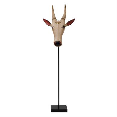These bull heads are hand-carved and painted with vegetable paint. The whole body is made out of a bamboo frame, then covered with cloth and painted all over. These figures are then adorned with garlands and decorated exquisitely. They are then carried by a group of devotees in processions.