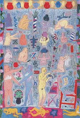 Born in 1937 in what is now Bangladesh, Arpita Singh received her diploma in Fine Arts at the Delhi Polytechnic before taking up the job of a designer at the Weaver's Service Centres in Kolkata and New Delhi. Each of Arpita Singh’s drawings, watercolours on paper, and oils on canvas has a story to tell. To simply say that this renowned artist’s work is narrative would be a gross understatement. Afflicted by the problems that are faced each and every day by women in her country and the world in general, Singh paints the range of emotions that she exchanges with these subjects – from sorrow to joy and from suffering to hope – providing a view of the ongoing communication she maintains with them.