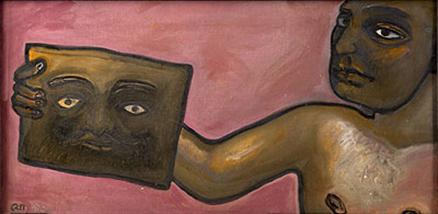"My background is relevant," he once remarked in an interview, explaining that his life in Calcutta was "quite disturbed with political movements. This has a definite influence on my work like the Ganesha period. The Bengali business class worshipping the icon, and their corruption, how they degenerate just like the flesh." The famine, the Partition, and the food movement all cast a pall over his formative years, and a quality of darkness may be seen to inhere in Chowdhury's work. Yet as well as an indicator of sadness, this darkness can be understood to evoke an aura of mystery. It is an effect enhanced in Chowdhury's more recent works, which, increasingly, crop the central image. Chowdhury explains that "The purpose is to hide some parts. The moment I show the entire figure, the interest in the details would be lost. Earlier on, the figures were observed in their natural bearings which came through expressionistic stylization and the weight of reality was greater. There is an effect of distancing today."