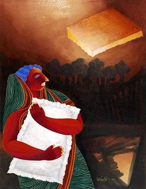 Bizarre images crowd his canvasses and form an integral part of his art: images that float in the air, survey the world with their legs pointing skyward, distorted beyond recognition. He explains, "If some of the figures in my paintings are seen suspended in the air and others, upside down, it is so because I am trying to present the predicament of a middle-class man, who does not have a secure foot-hold in our society, who has to make compromises, face disappointments and whose dreams and aspirations are invariably turned down."