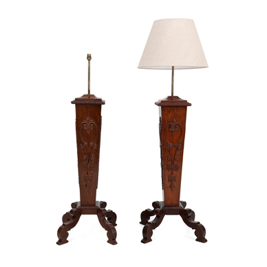 The wooden lamp stand comes with one suggestive lamp shade with a diameter measuring 37.5 in (95 cm)