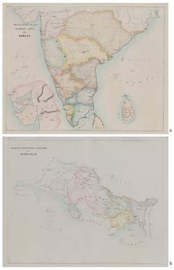 b) Girolamo Petri Vicariati E Prefetture Apostoliche nell' Indostan Watercolour on paper Circa 1860 Map Size: 18.5 x 22.75 in (47 x 58 cm) Sheet Size: 19 x 24.5 in (48.5 x 62.5 cm)