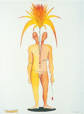 The artist, well known internationally, uses a mixture of traditional and contemporary imagery, including cinema posters and political graffiti, in his work. His paintings can be, in turn, mischievous, ironic and quizzical as they inject a gentle surrealism into prevailing notions of reality. As if recycling traditions from a cultural encyclopaedia, he meticulously constructs a web of images - mythic, modern, classical and mundane - growing out of the body of cosmic man.