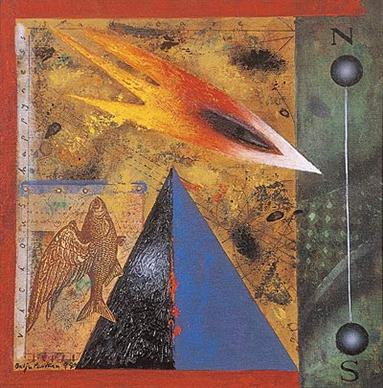 In the early 1980s, Parthan decided to quit painting. "I felt like a missionary for Western art," he explains. Instead, he enrolled in a course on comparative mythology at Bombay University, and began working as a writer and illustrator. He returned to painting in the early 1990s, when he began to explore the imagery of mandalas and Tibetan tangas. These traditional subjects were balanced by his reading in post-modern theorists. The latter enabled him to "recontextualize things from my immediate environment. The post-modern theorists have accepted the localization of reality. We're now reconciled to the idea of an individual reality. Art is about local realities. Personally, I live in a post-colonial concept of space. The world exists as a flux."