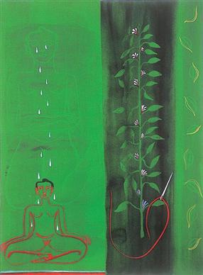 She does not treat art, and life in isolation and deems it necessary to experience life to paint. Her fervent activity of painting is a struggle for her own rightful existence. The artist explains to say, "I go through all the terror and agony of stepping into an 'unknown'." Her images are a byproduct of her thoughts and emotions, her readings, observations, beliefs, values and vast compilation of past experiences.