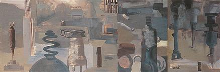 Sharma moves swiftly and convincingly between figure studies, portraits and landscapes in oil and acrylic on canvas, and large scale installations. His recent works explore urban landscapes and industrial geometry, playing and teasing the forms that they take, stretching their boundaries, and depicting civilization through empty factories and battered machines.