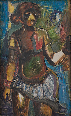 This 1950 portrait of a tribal girl by M.F. Husain represents the artist's formative period, underscoring the early crystallization of his artistic strengths and the idiom that would soon come to define his body of work. Painted a year before the artist's large, seminal canvas, 'Man', this work was acquired from the artist by Emanuel Schlesinger, and formed part of his large collection of modern Indian art.