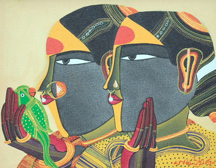 Thota Vaikuntam hails from Andhra Pradesh, in South India, and finds his inspiration in the rural areas of the state. Men and women of his village are often the central characters of his work. Telangana women, in particular, are frequent subjects for his works. The obsession can be traced back to his childhood, when he used to be fascinated by the male artists who used to impersonate female characters in the travelling theatre groups that...
