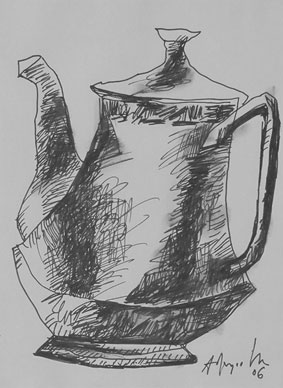 "My drawings and paintings help to express my feelings. My drawings are not the exact copy of what I have seen through my eyes; but I feel they are the impressions of beauty, which are constantly imprinted on my inner vision and emerge as black and white forms on paper," he expresses. Reminiscent of an age long gone, his sketches are a constant search for greater freedom of expression and serve as an outlet for his creative energy. They capture the essence of the subject in all its glory, and yet leave something to the imagination with shadowy faces.