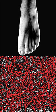 Commingling pictures and text, Sahu borrows motifs from the mass media. The black and white photographic images adopt a documentary style of address, presenting a snippet of everyday reality, such as we would be likely to find in a newspaper or magazine clipping. Yet, in Sahu's oeuvre, this process of citation operates on multiple levels.