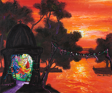 Polemics have always intrigued Manu Parekh – the energy of the organic form and the inherent sexuality within these forms are intangible elements in his works. His paintings provoke viewers to take notice of the world around them through the emotion, pain and anguish expressed in the subjects of his paintings. His colors and forms exude a volatile energy that can barely be contained within the confines of his canvas, and become an extension of the artist's personality.