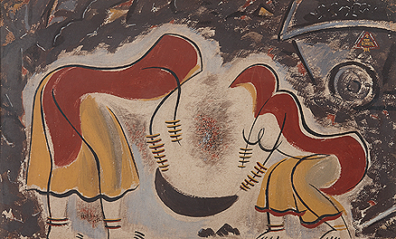 "My intention was then, as it is now, to integrate the representational, the metaphysical, the suggestive and symbolic in two-dimensional images in order to achieve inner satisfaction.I established my identity by my individualised method of using line and texture in my works." (K. K. Hebbar, Voyage in Images, Mumbai: Jehangir Art Gallery. Not paginated