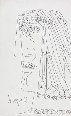 Francis Newton Souza's unrestrained and graphic style created thought-provoking and powerful images. His repertoire of subjects covered still life, landscape, nudes and icons of Christianity, rendered boldly in a frenzied distortion of form. Souza's paintings expressed defiance and impatience with convention and with the banality of everyday life. Souza's works have reflected the influence of various schools of art: the folk art of his native Goa, the full-blooded paintings of the Renaissance, the religious fervour of the Catholic Church, the landscapes of 18th and 19th century Europe, and the path-breaking paintings of the moderns. A recurrent theme in his works was the conflict in a man-woman relationship, with an emphasis on sexual tension and friction. In his drawings, he used line with economy, while still managing to capture fine detail in his forms. He also used a profusion of crosshatched strokes that made up the overall structure of his subject.