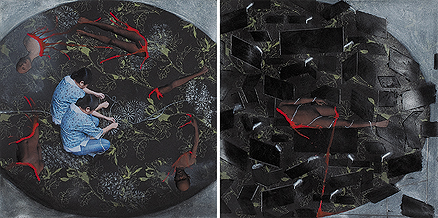 Mixed media on paper pasted on board