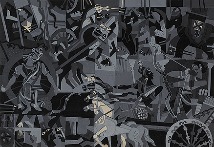 Born in 1940 in Nizampur, Andhra Pradesh, K. Laxma Goud completed his diploma in Drawing and Painting from the Government School of Art and Architecture, Hyderabad, in 1963; he then went on to study Mural Painting and Printmaking at the Faculty of Fine Arts at M.S. University, Baroda, from 1963 to 1965. Goud displays versatility over a range of mediums, from printmaking, drawing, watercolour, gouache and pastels to glass painting and sculpture in bronze and terracotta. Over the many years of his artistic career, he is known to have moved from one medium to another with élan. Fellow artist T. Vaikuntam, in one of his interviews, reminisces that it was Laxma Goud who introduced him to the art of sketching and made him aware of the possibilities of this medium.