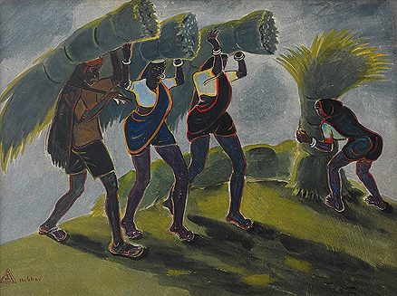 Kattingeri Krishna Hebbar was born in 1911 at Kattingeri in the Udupi district of Karnataka. His father used to make clay idols of Lord Ganesha during festivals and this background in folk art helped Hebbar decide that he wanted to pursue art as a career. Despite training in the Western tradition, Hebbar’s body of work remained rooted in the folk traditions of India. After some initial training in Mysore and later in Mumbai at the Sir J.J. School of Art, he started his career as an art instructor at the Sir J. J. School of Art and taught there between 1940 and 1945. He then went to Europe to study art at the Academy Julian in Paris.