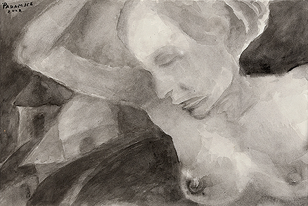 Padamsee’s interest in structure and form takes shape from landscapes, and is borne from an interest in Sanskrit texts such as the Abhijanashakuntalam . His Mirror Images reflect a concern with the duality of existence. His portraits and heads are treated with the same interest in constructing form rather than in the specifics of portraiture. The only occasion when he created identifiable portraits was in 1997, with his “Gandhi” series of works on paper in watercolour and charcoal.