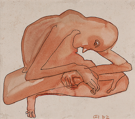"My background is relevant," he once remarked in an interview, explaining that his life in Calcutta was "quite disturbed with political movements. This has a definite influence on my work like the Ganesha period. The Bengali business class worshipping the icon, and their corruption, how they degenerate just like the flesh." The famine, the Partition, and the food movement all cast a pall over his formative years, and a quality of darkness may be seen to inhere in Chowdhury's work. Yet as well as an indicator of sadness, this darkness can be understood to evoke an aura of mystery. It is an effect enhanced in Chowdhury's more recent works, which, increasingly, crop the central image. Chowdhury explains that "The purpose is to hide some parts. The moment I show the entire figure, the interest in the details would be lost. Earlier on, the figures were observed in their natural bearings which came through expressionistic stylization and the weight of reality was greater. There is an effect of distancing today."