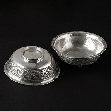 Each with a foliate motif in heavy gauge silver.