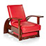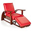 A stylish four-position reading chair with brass hardware, and adjustable pop-out foot rest.