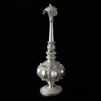 Of all the silverware produced on the Indian subcontinent in the 18th and 19th centuries, Kutch silver was, and still remains, the most valued and sought-after. The defining allure of Kutch silver lies in its decorative style. The endless foliate scrolling, elaborate hunting scenes, realistic human figures, and intricate detailing on the smallest parts, set Kutch silver several notches above that produced in other regions of India.