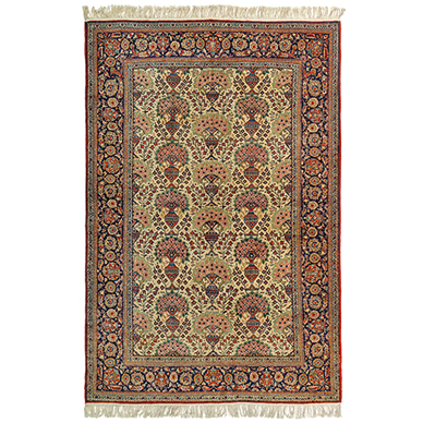 With all over guldasta/ flowervase design, the Persian word for "enclosed space" was 'Pairi-daeza', a term that was interpreted to describe the 'Garden of Eden' or 'Paradise on Earth'.