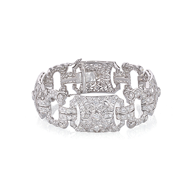 Art Deco style bracelet with geometric lines, set with full-cut diamonds, mounted in white gold.