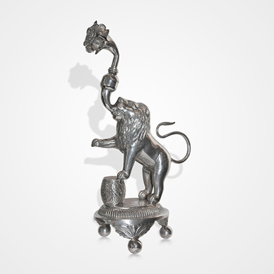 The dominant stylistic influence on Bombay silverware was from Cutch, and many articles from Bombay are difficult to distinguish from those originating in Cutch. This is partly a repercussion of the Cutch famine in 1899, after which many Cutch-trained silversmiths migrated to Bombay to practice their craft. One of the classic Bombay alternatives to the intricate scroll designs of Cutch was the creation of 'picture' designs of local scenery.It was not until the early 20th century, that a distinctive Bombay style emerged. These designs largely consisted of animal imagery on the body of the ornament and the use of elephant heads forming the spout of teapots and jugs.