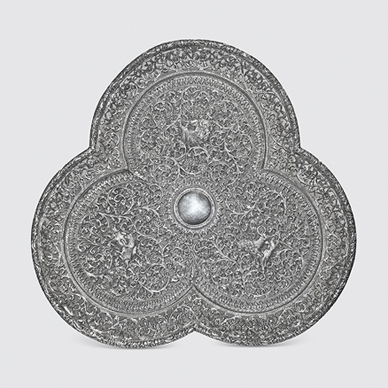 The attractive ornamentation of scrolling foliage intertwined with animals, birds and hunting scenes was the most venerated style of Indian silverware in the late 19th century. Also aiding the success of the Cutch style were the supportive efforts made by the Raos of Cutch ensuring examples of the region's silverware were displayed in every possible international exhibition.